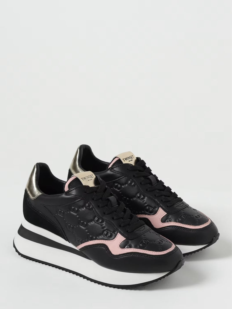 Sneakers platform in pelle con logo Bic. Ottico/Nero
