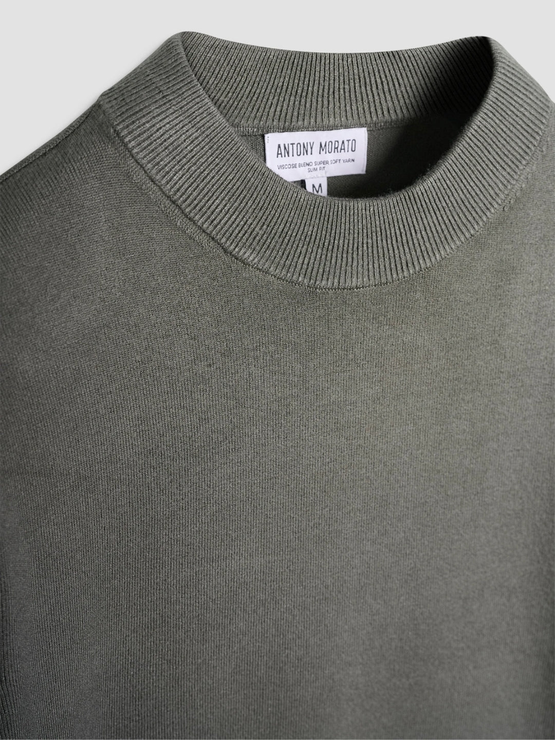 Antony Morato Maglione da Uomo Slim Fit in Filato Misto Viscosa Stretch Verde Militare Scuro