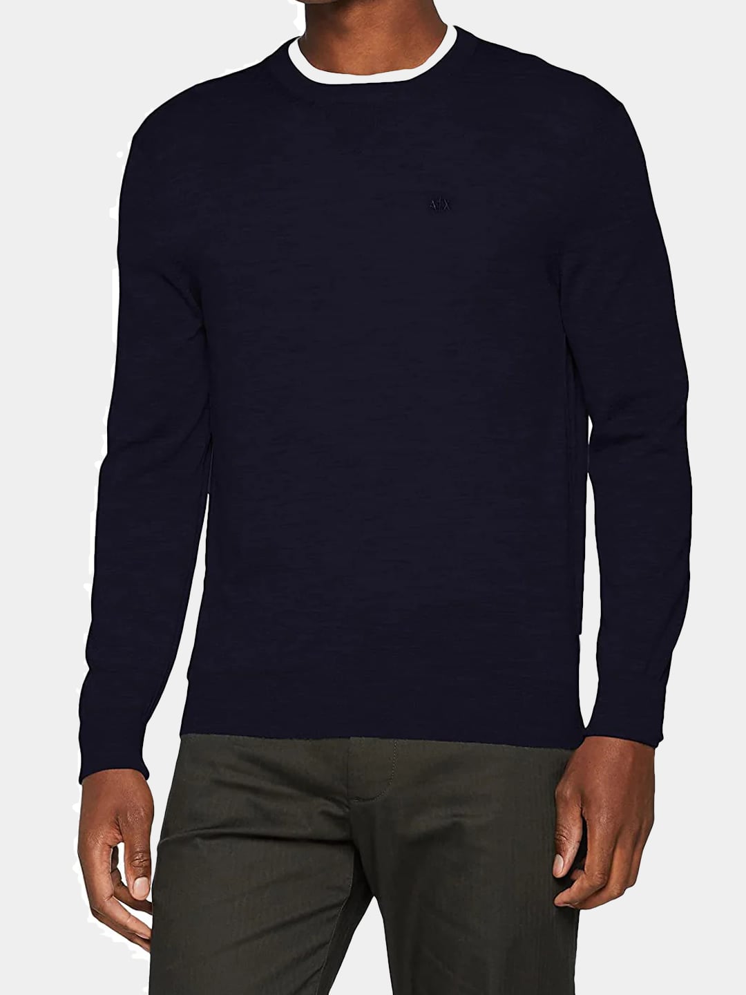 Armani Exchange Maglione Uomo In Pura Lana Blu