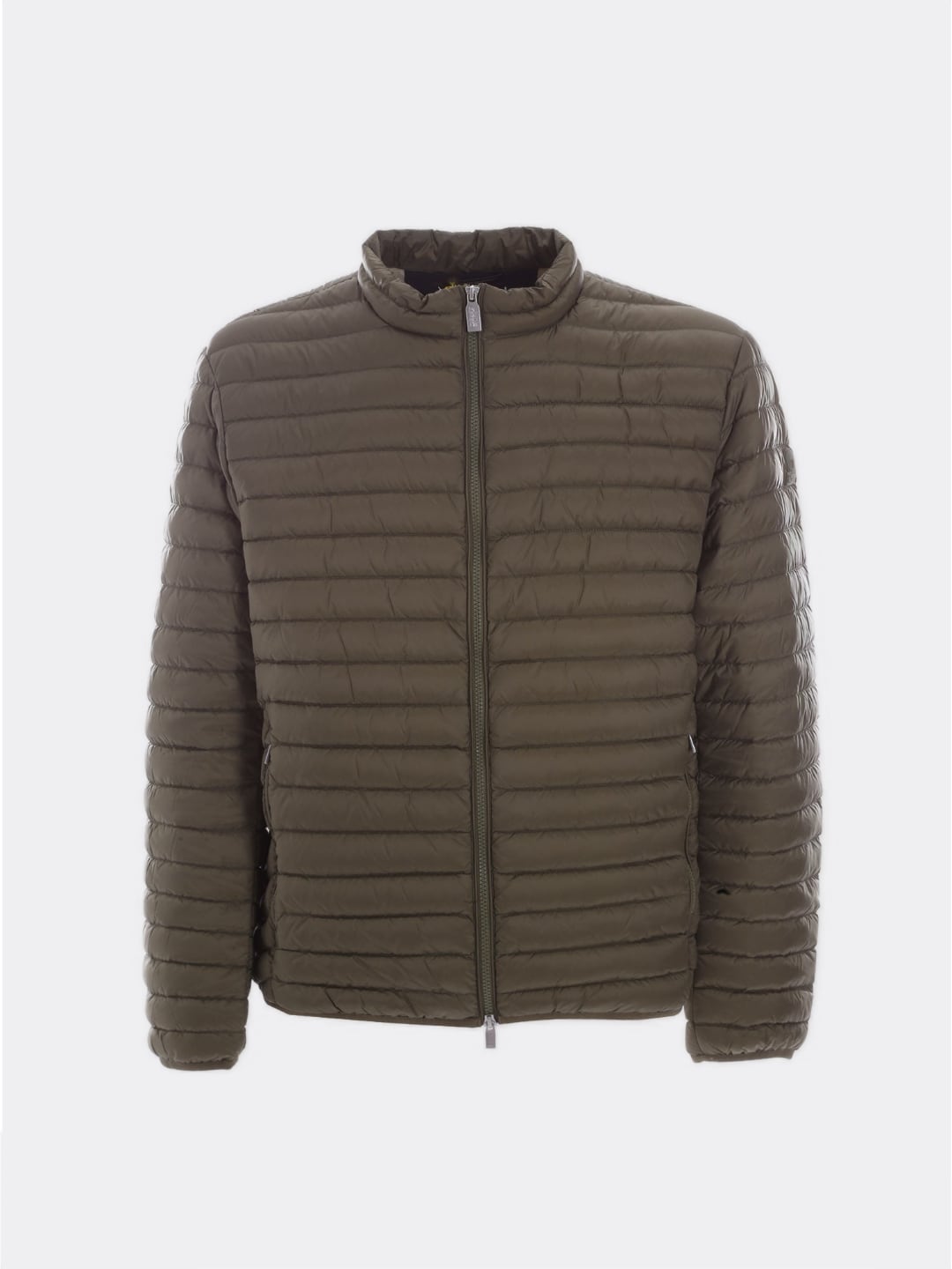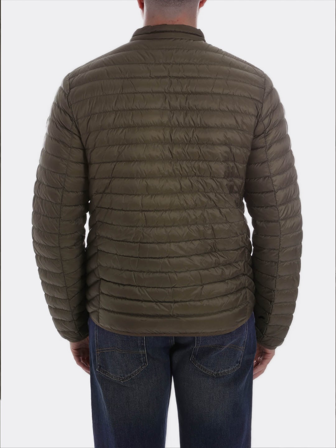 Piumino full zip realizzato in tessuto leggero opaco nylon cirè con imbottitura in vera piuma naturale certificata 800 fill power.