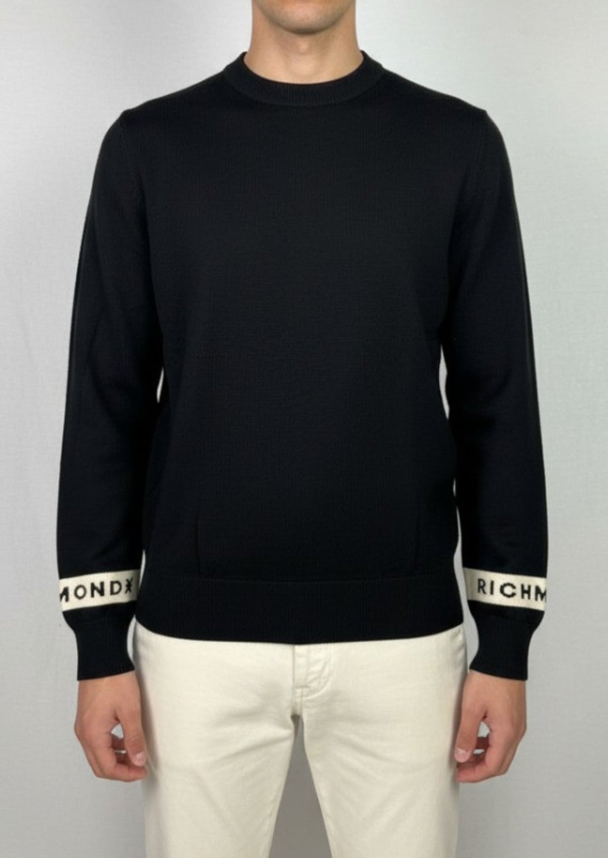Richmond X Maglione Uomo Girocollo Dettaglio Logo Tape Nero