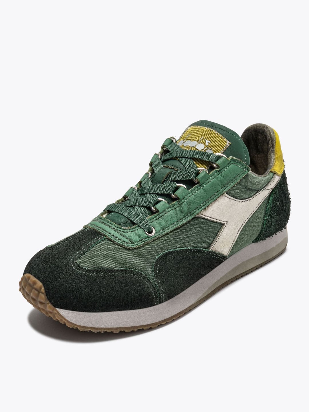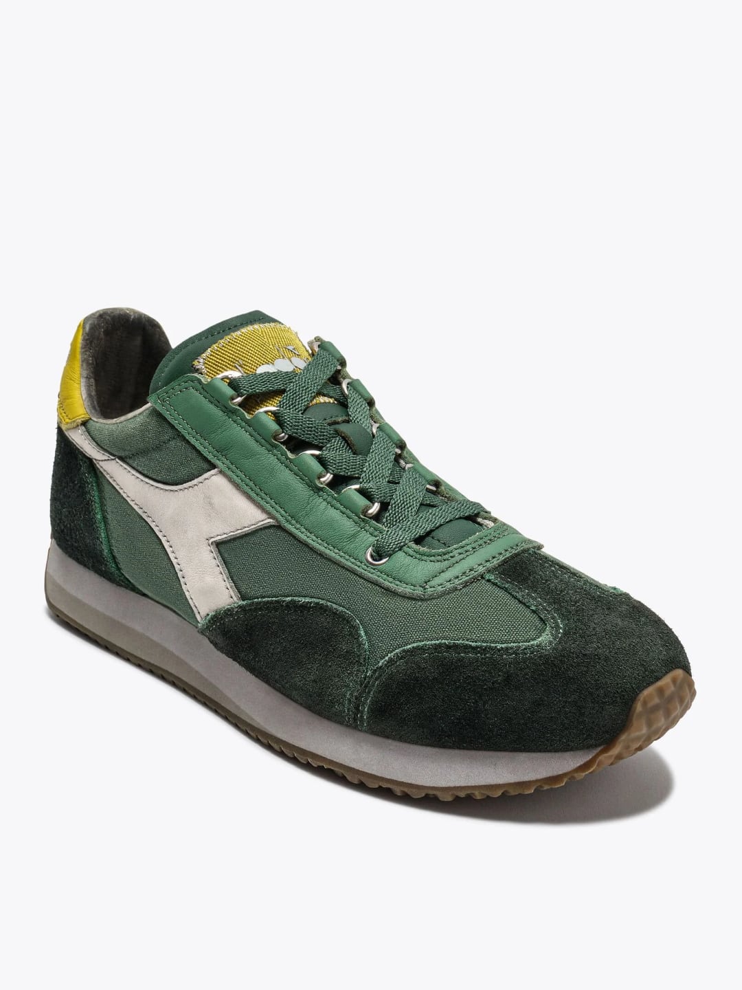 Creata ad hoc per superare i limiti in campo sportivo, Equipe mantiene inalterata la cura per il dettaglio e il comfort di una calzatura sportiva, confezionati in un design elegante che la rendono adatta a ogni stile e occasione. Un prodotto di elevata qualità e stile che dura nel tempo, dal 1975 a oggi. Questa sneaker Heritage si reinventa, ancora una volta. Equipe H Dirty Stone Wash EVO è realizzata in canvas e suede, con una linguetta in pelle. Non è Equipe senza i trattamenti stone wash e dirty. Per quel fascino della scarpa ereditata, come se fosse appena riemersa dagli anni ‘80. Archivio 1975 Stile running anni ‘70, direttamente dagli archivi Diadora del 1975. Dettagli iconici come gli occhielli metallici sono fedeli alla prima scarpa Diadora per l’atletica di sempre Materiali di prima qualità Realizzata in canvas e suede, con linguetta in pelle Stone wash Una lavorazione tipica delle sneaker Heritage Diadora, il trattamento stonewash ammorbidisce la pelle Effetto dirty