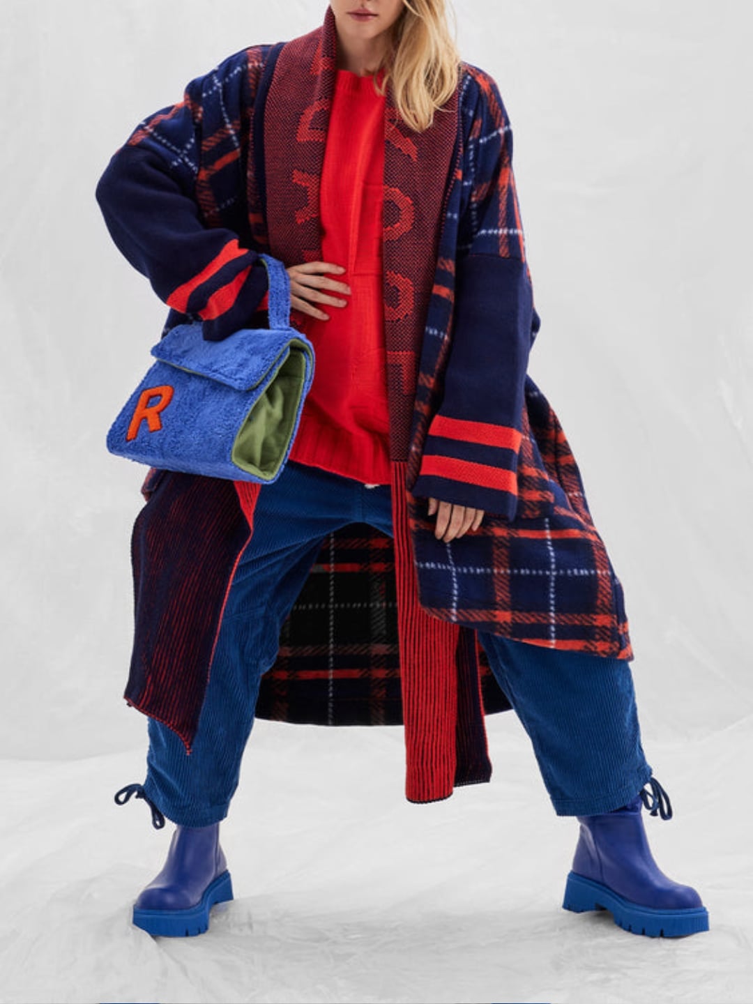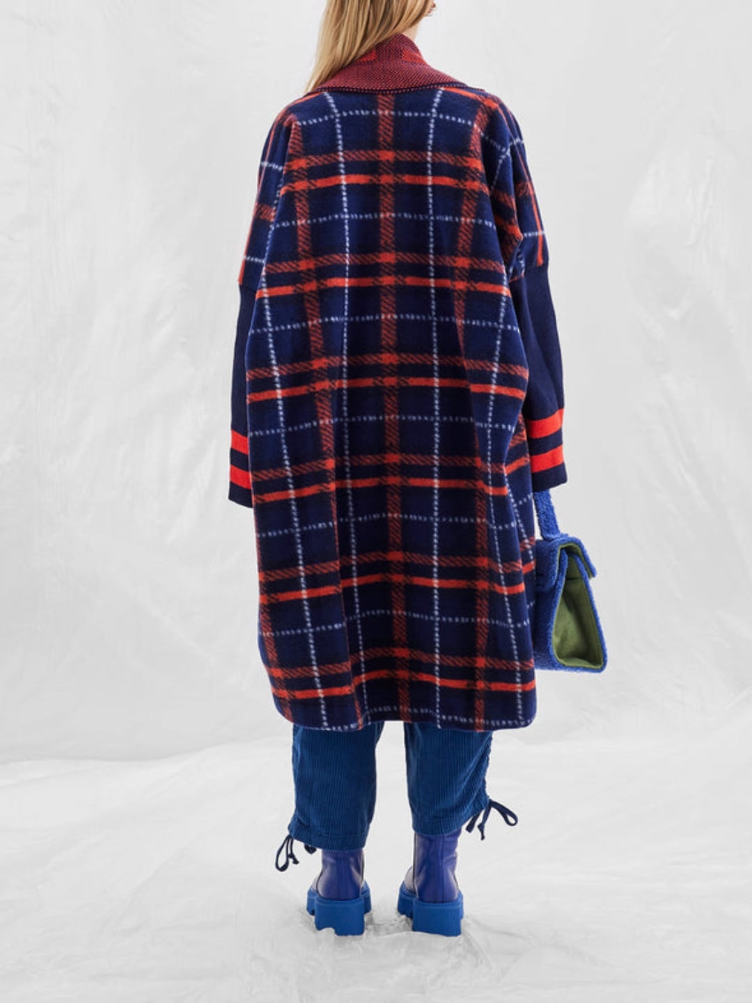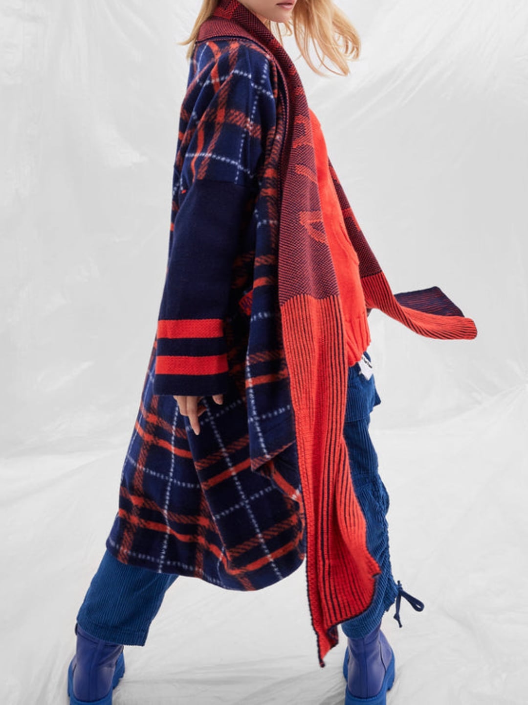 Via Delle Rose Cardigan Cappotto Muticolor lungo in misto lana senza allacciature e vestibilita' over.