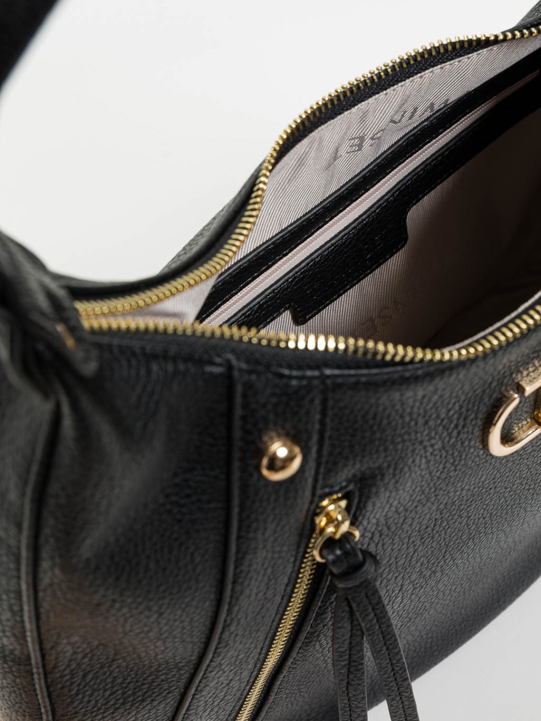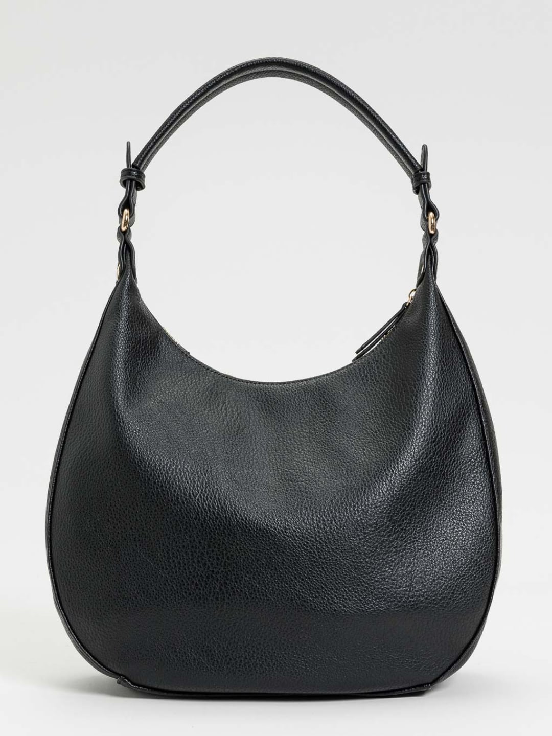 Borsa Twinset nera, modello a spalla, caratterizzata da un design arrotondato, in pelle sintetica a grana, chiusura con zip, interni in tessuto logato, tasca con zip.