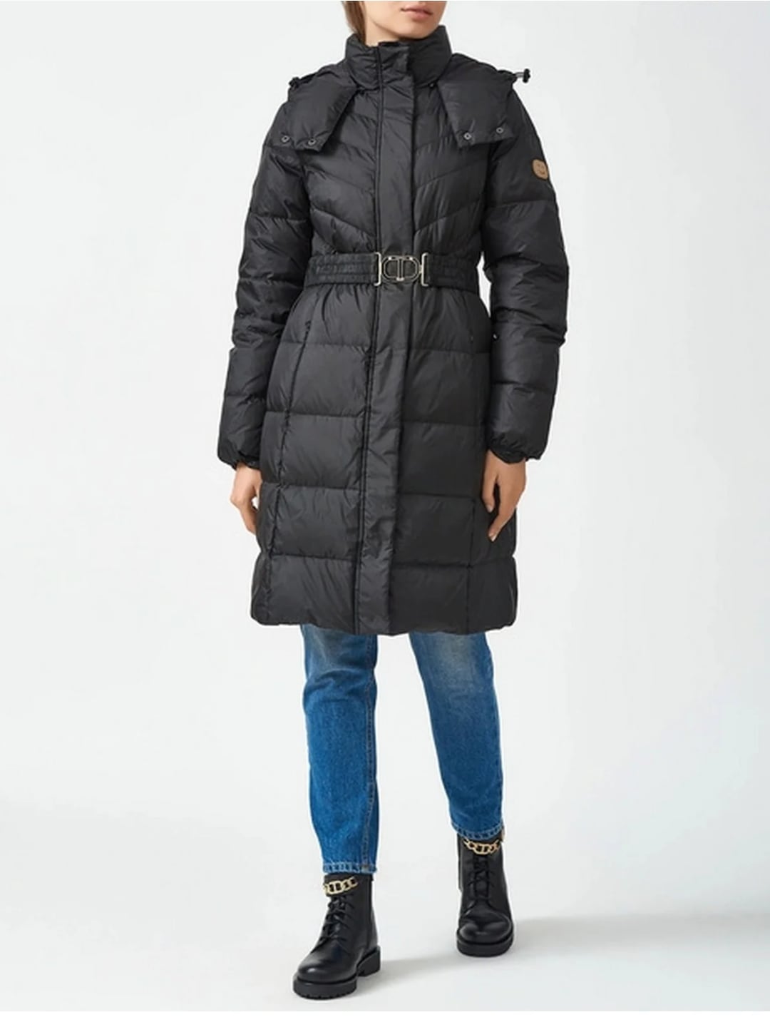 Twinset Piumino Lungo con Fibbia Oval Nero