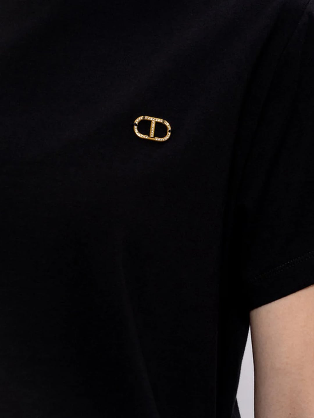 Twinset T-shirt con logo Oval T di strass Nero