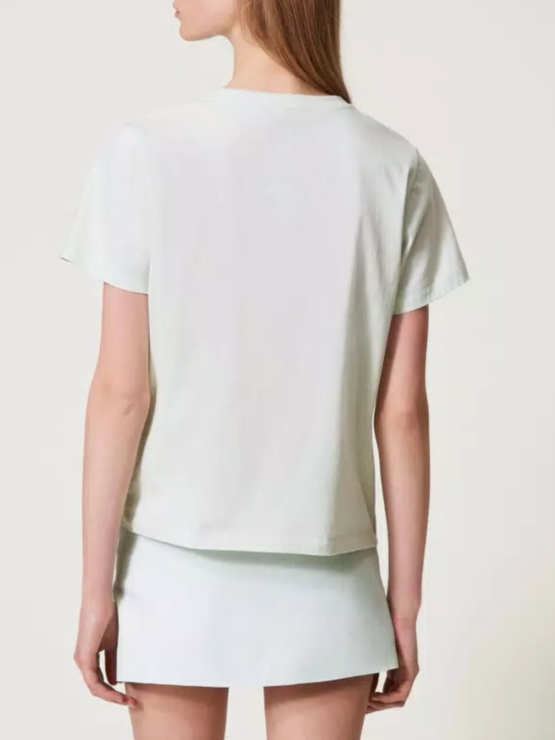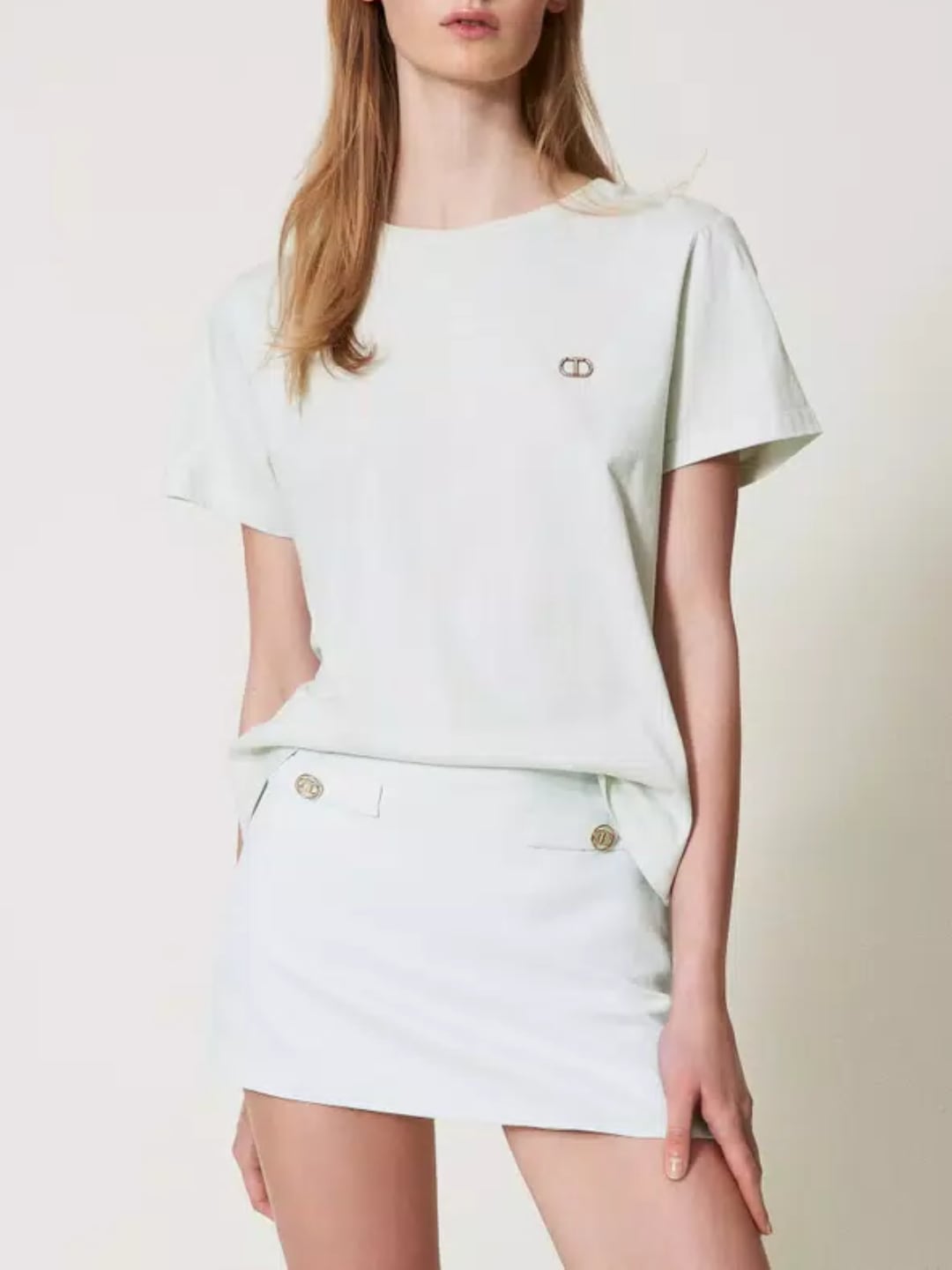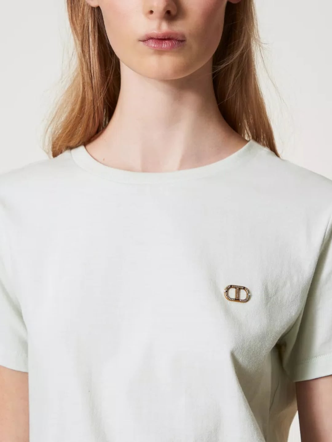 Twinset T-shirt con logo Oval T di strass Water Green