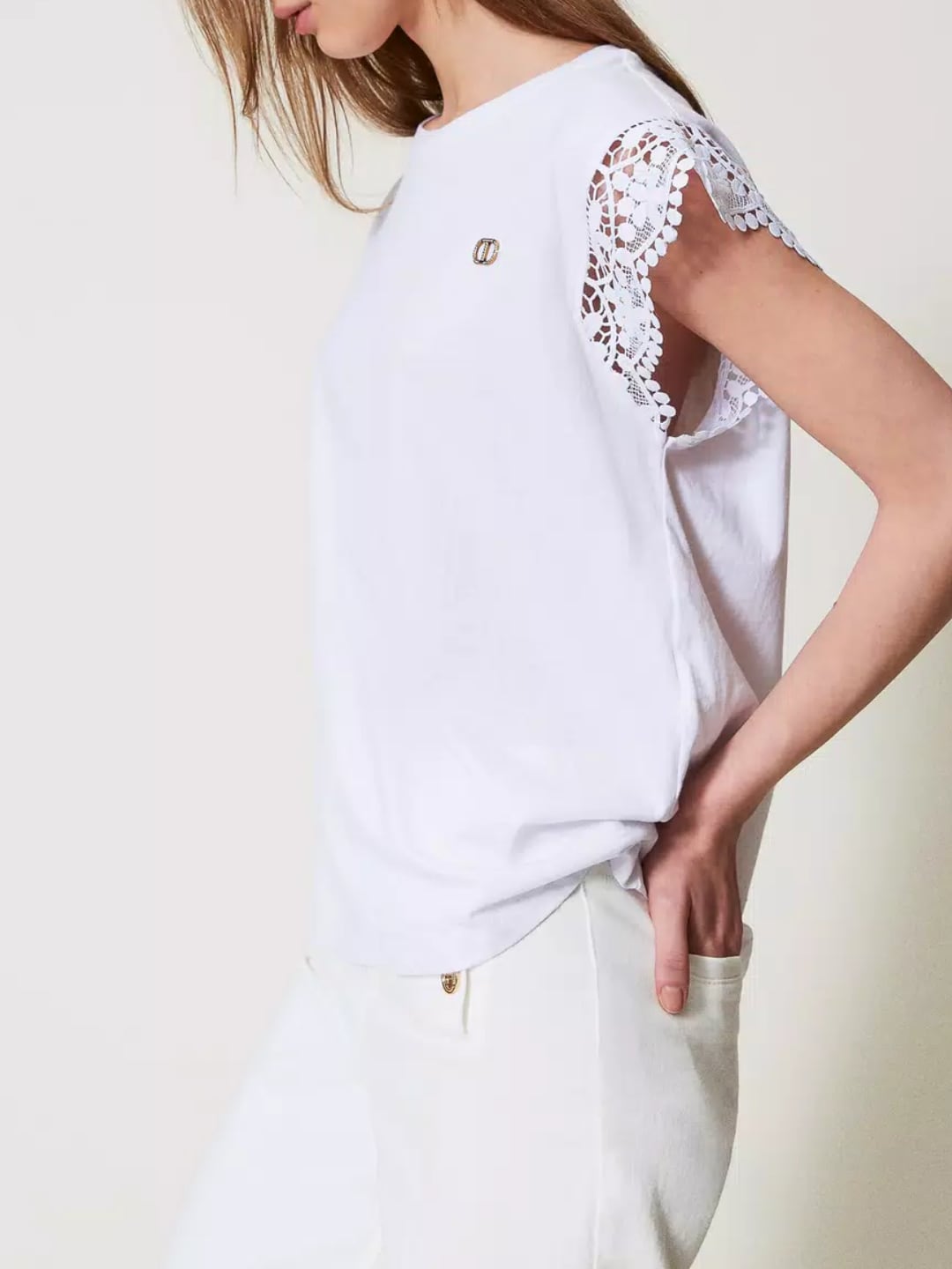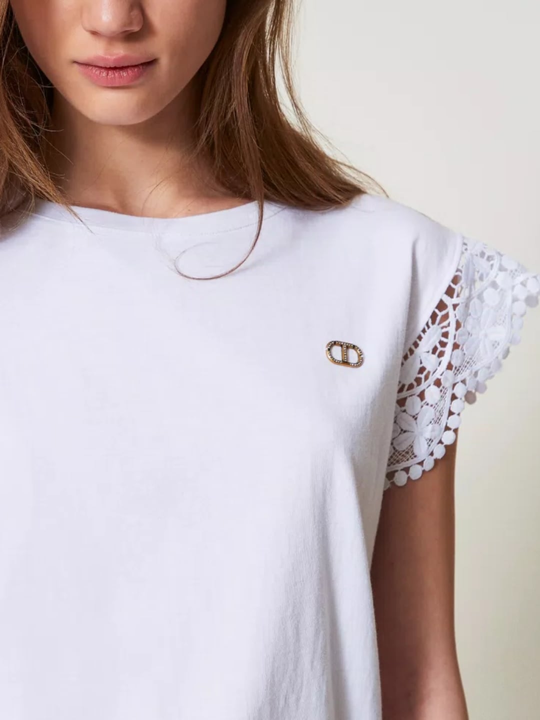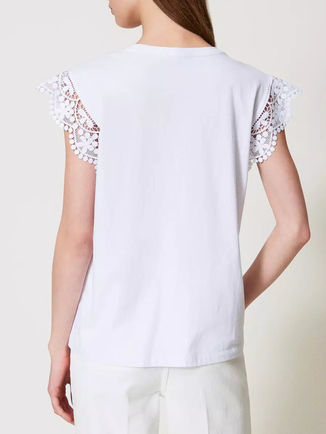 Twinset T-shirt con maniche ad aletta in pizzo Bianco Ottico