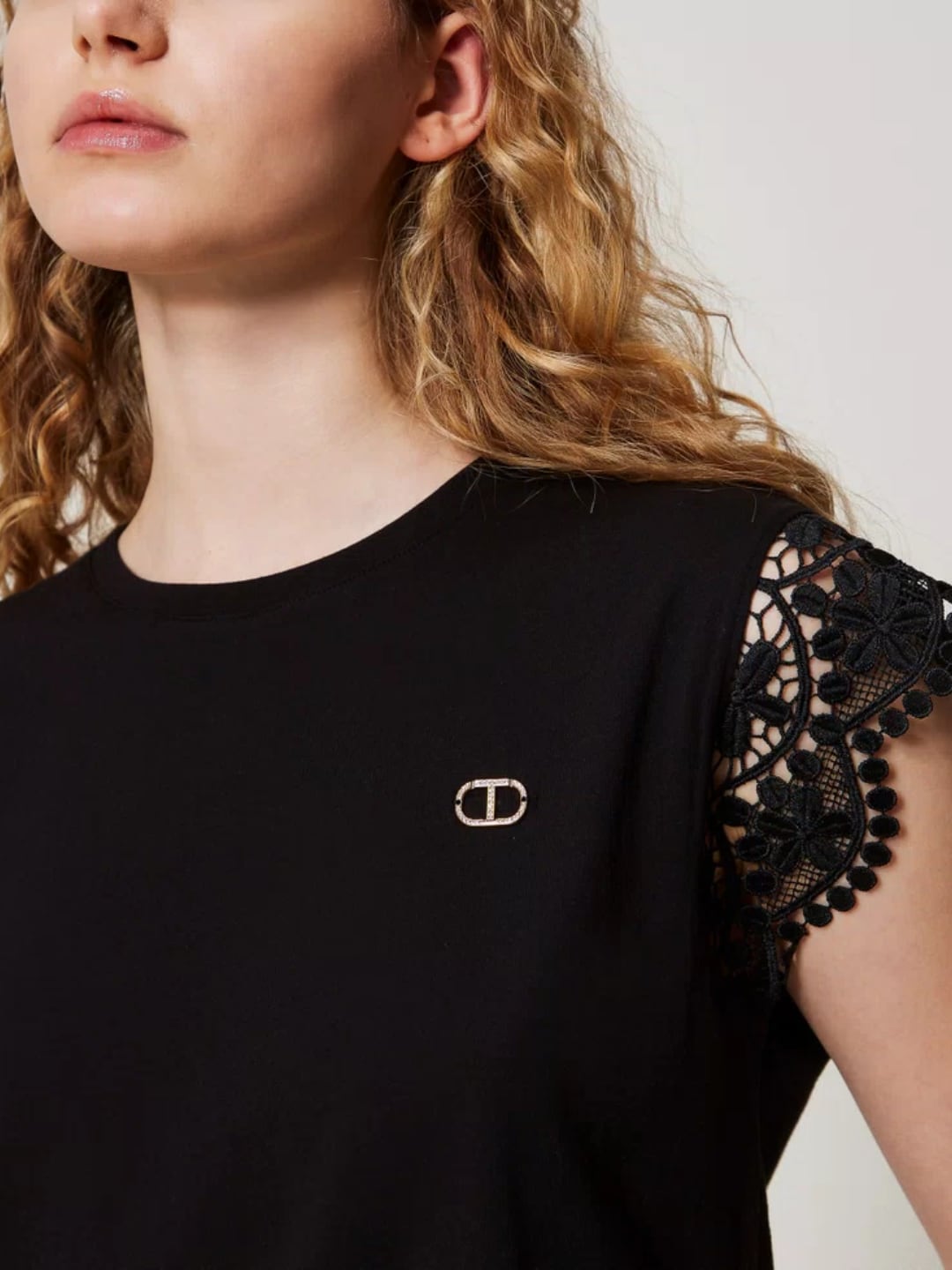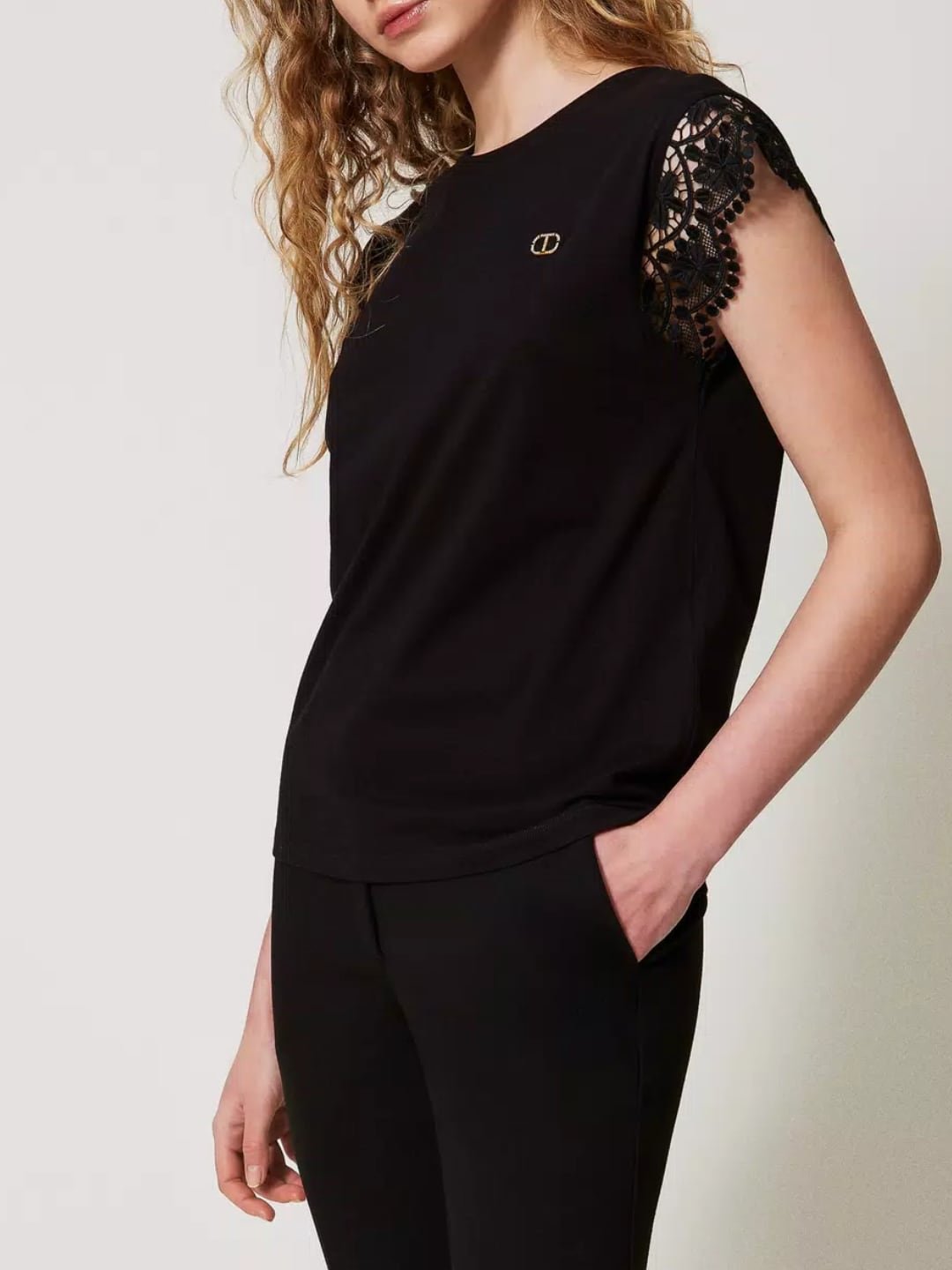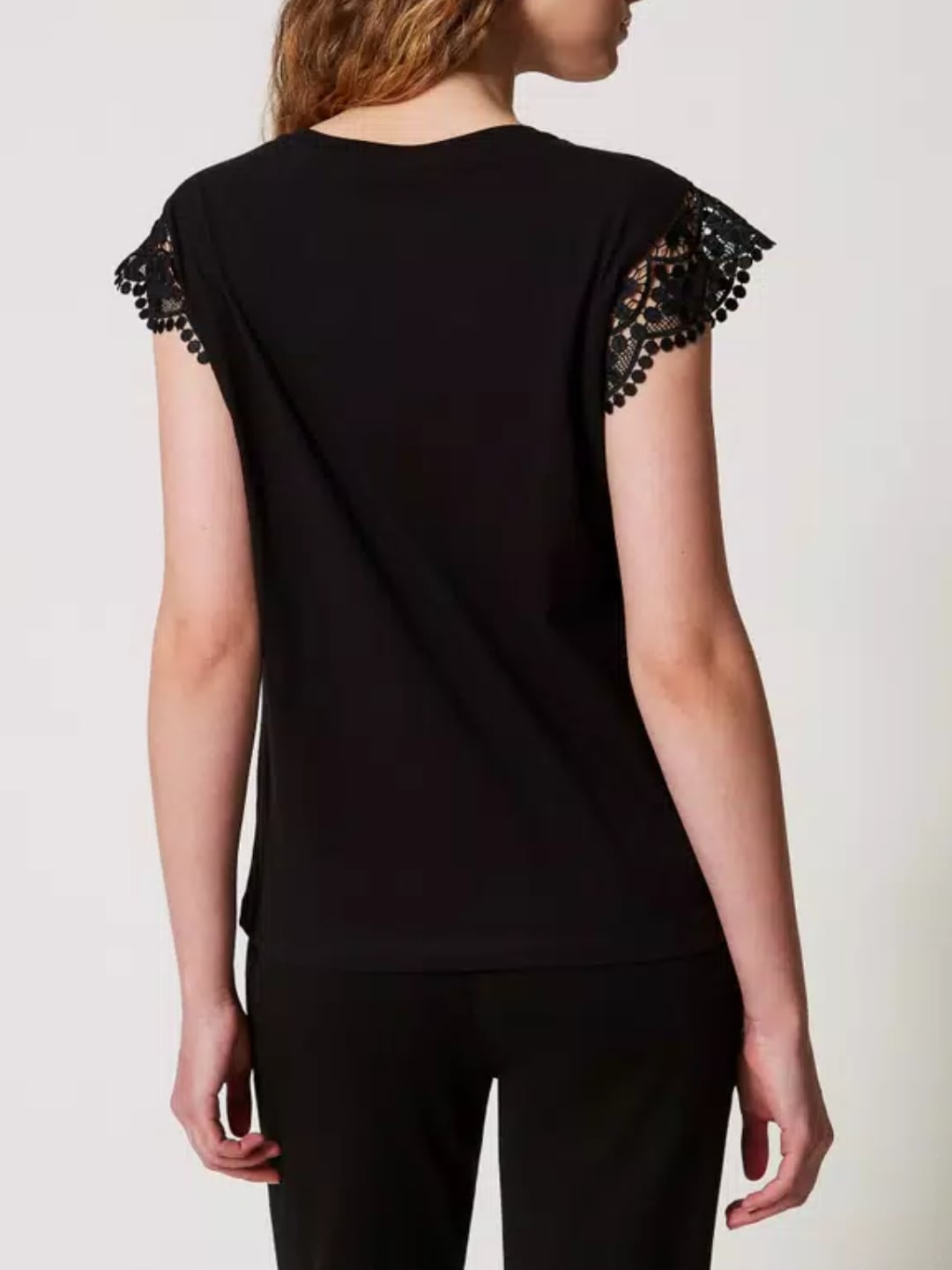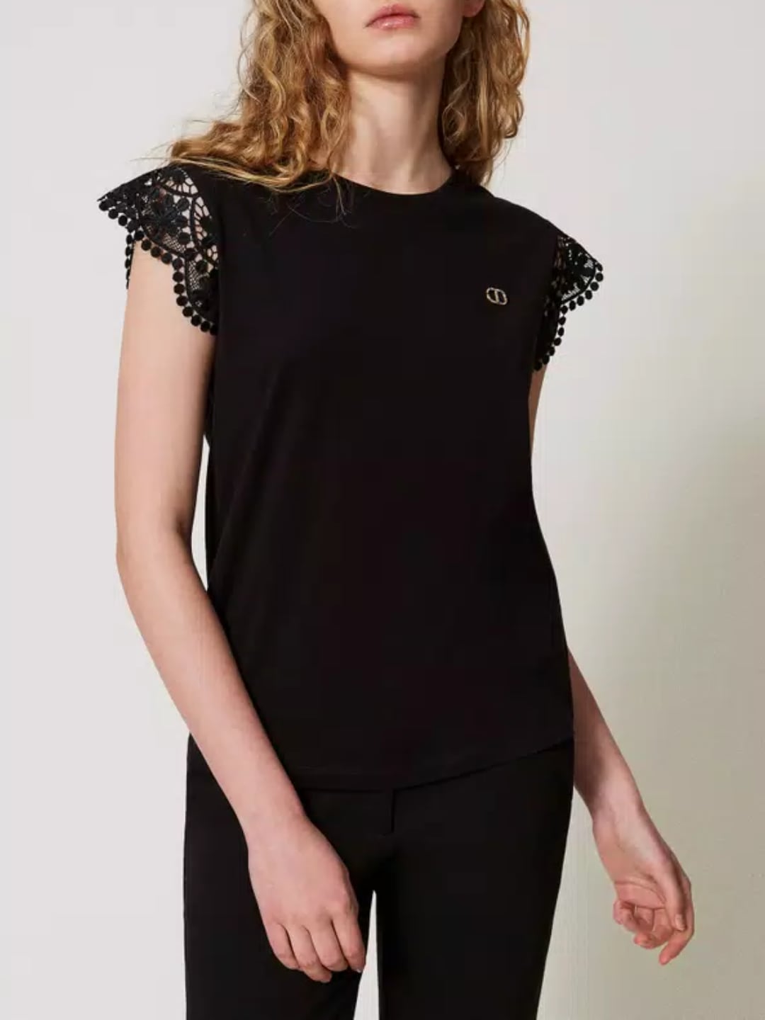 Twinset T-shirt con maniche ad aletta in pizzo Nero