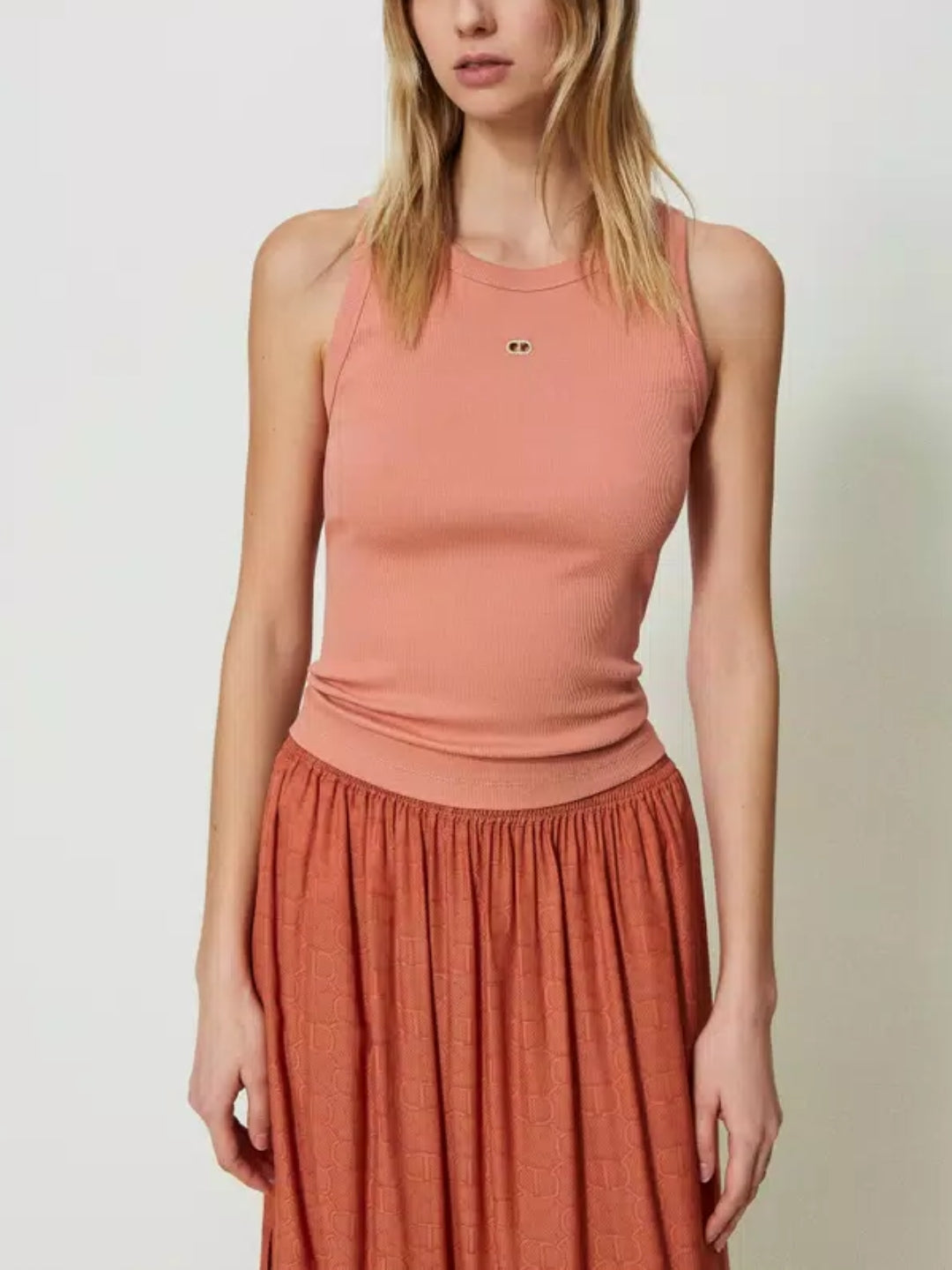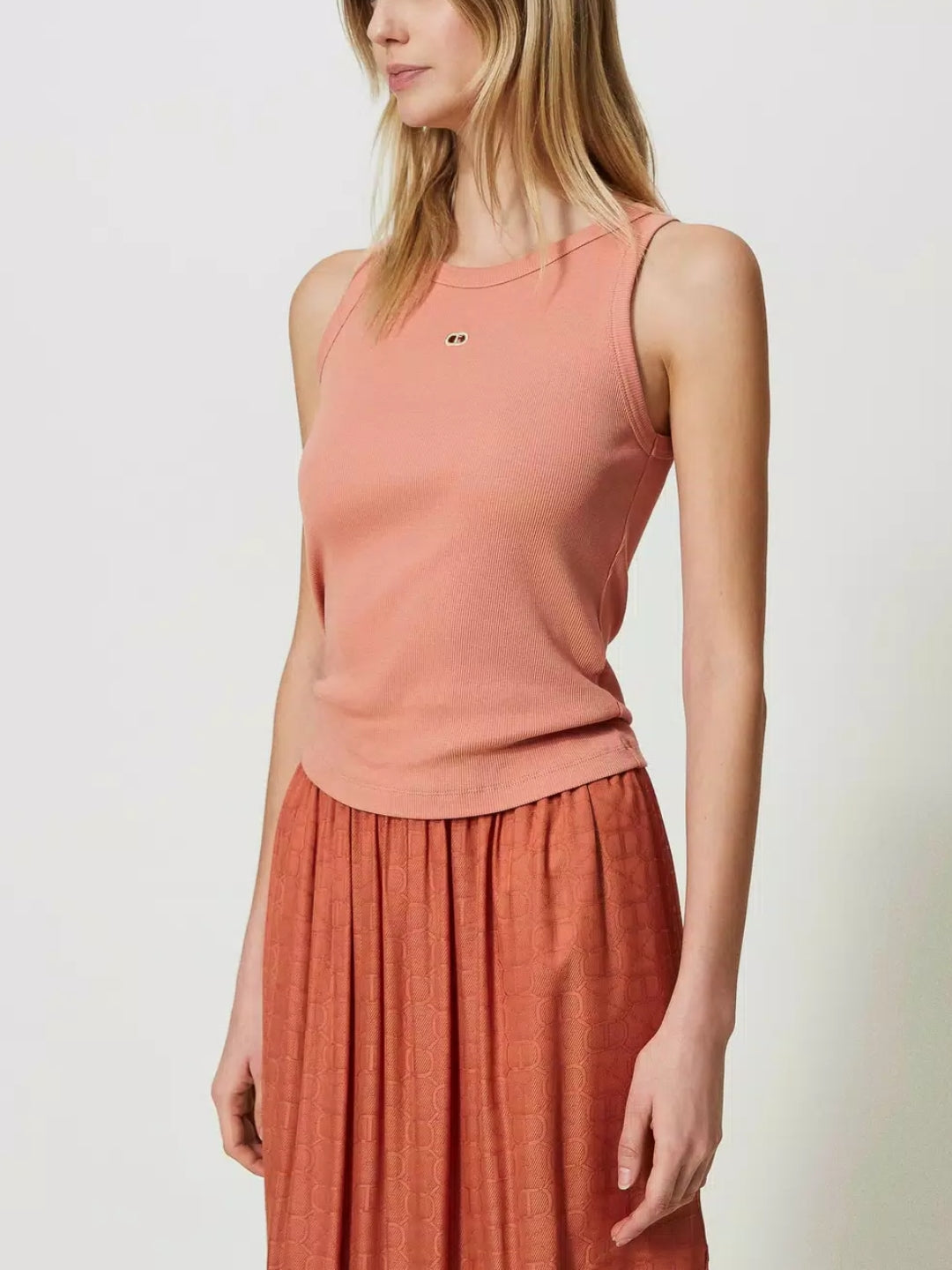 Twinset Top in maglia a costine con Oval T Arancio