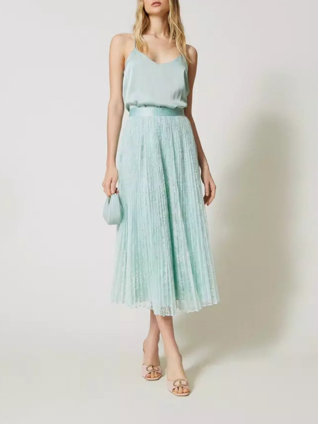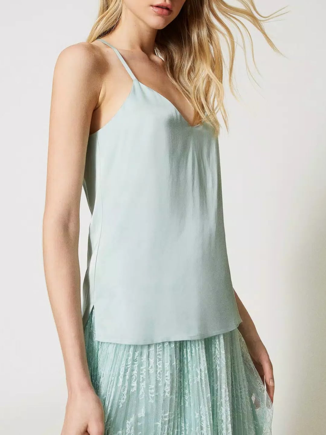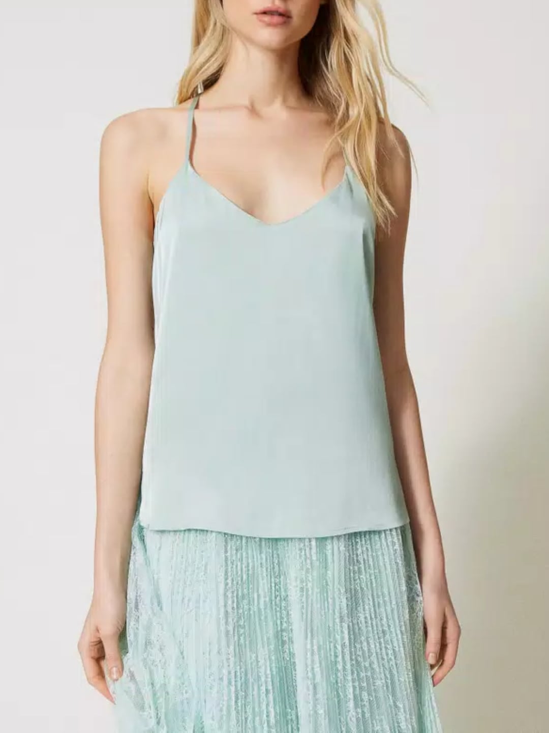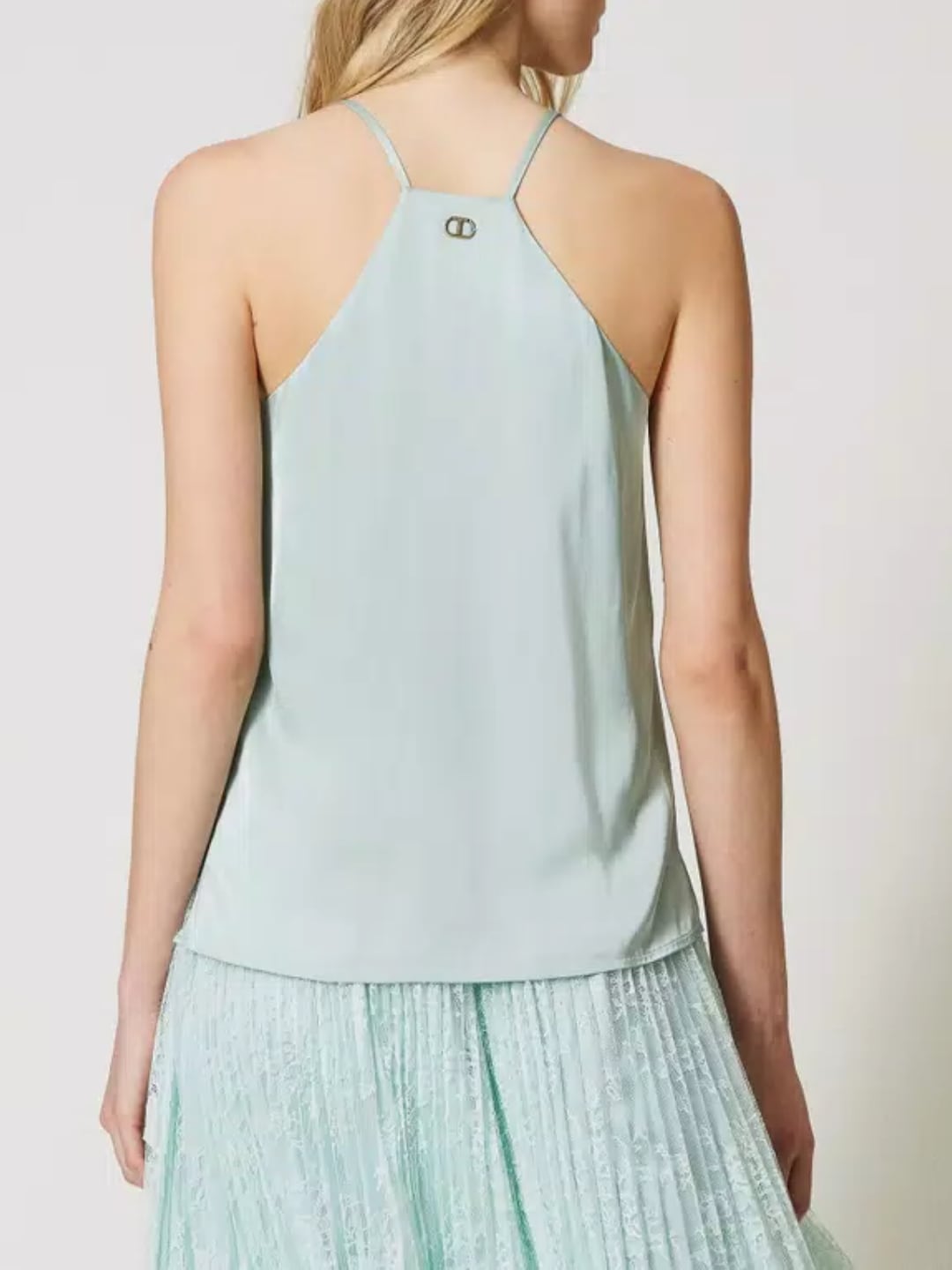 Twinset Top in raso con spalline Verde Agave