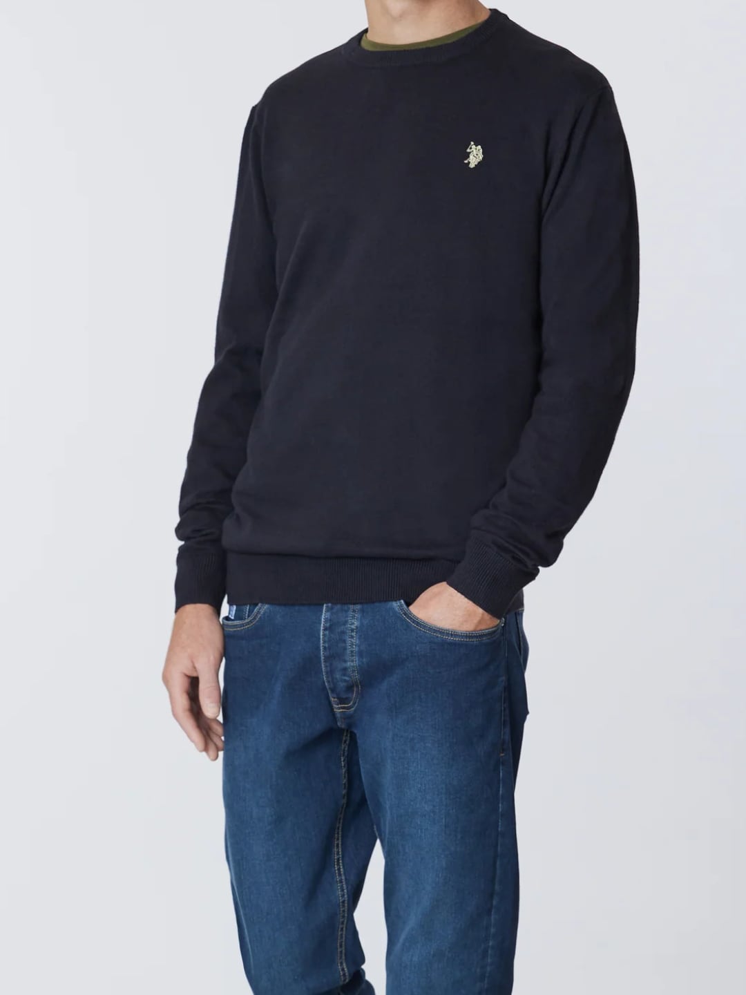 Us Polo Assn Maglia Girocollo Cotone e Cachemere Nero